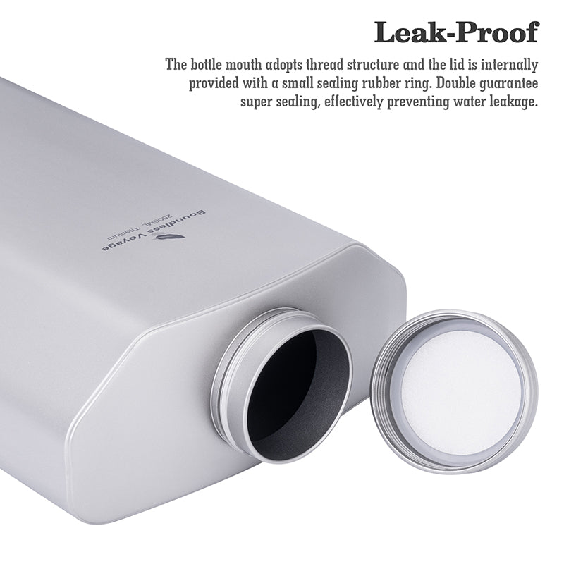 Titanium water bottle: Made by premium titanium, it is ultralight, durable and strong. Titanium does not react with beverages, no heavy metals are precipitated and the taste of the drinks is maintained.