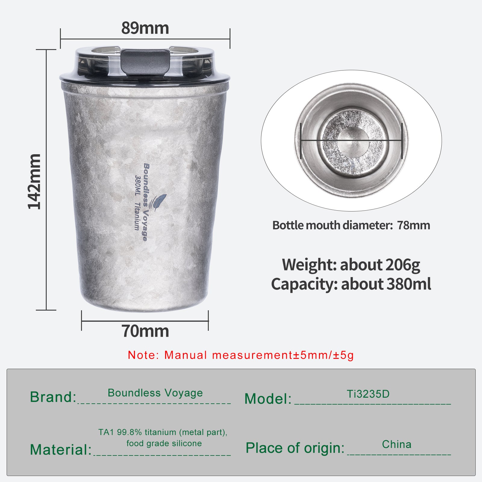 Boundless Voyage 380ml Titanium Insulated Drinking Cup Double Wall Vacuum Travel Coffee Tea Water Mug