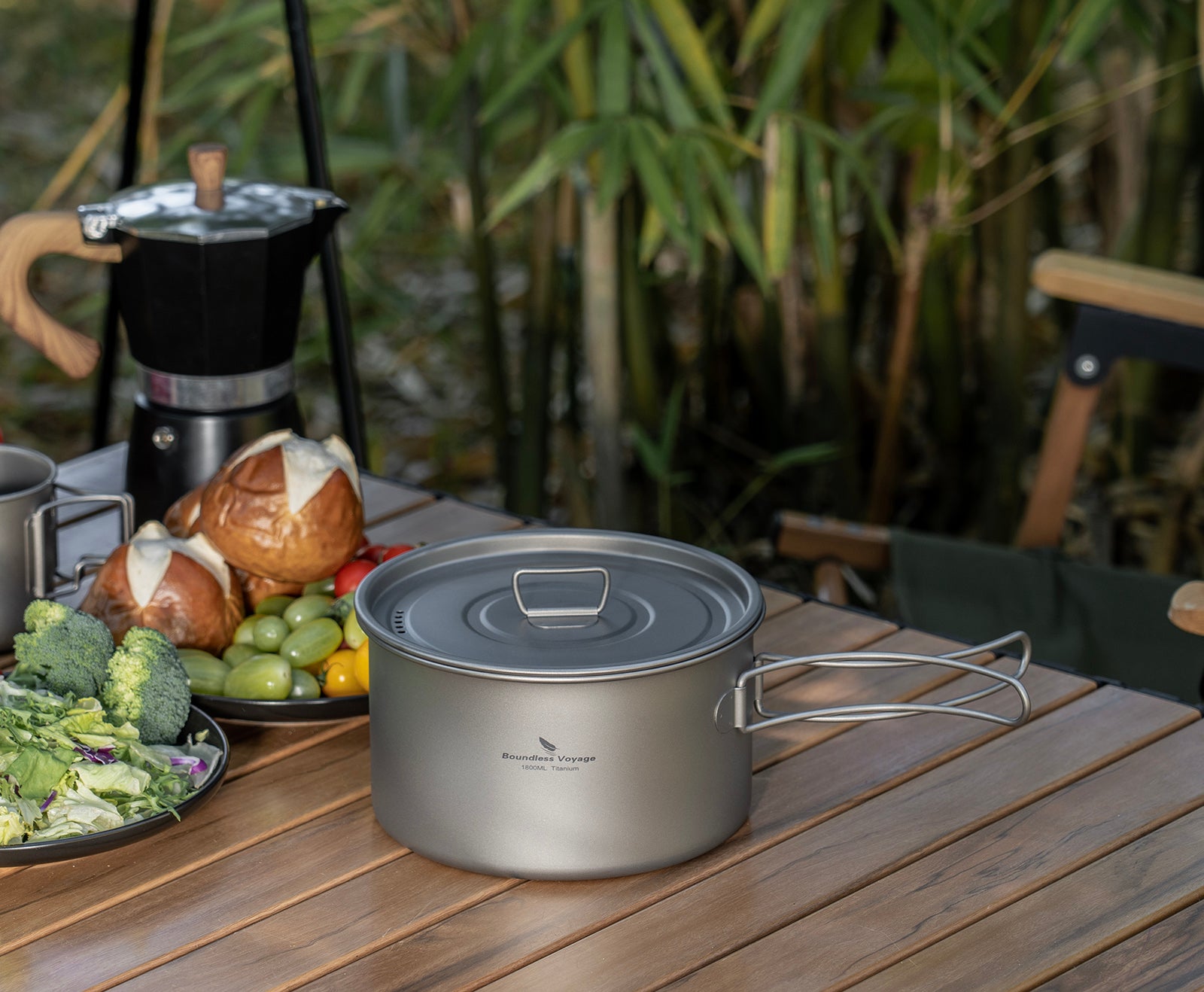 Boundless Voyage Lightweight 1800ml Titanium Pot Outdoor Portable Cooking Set hiking Backpacking Pot for Hiking Trekking Picnic Fishing Mountaineering Ti2107C