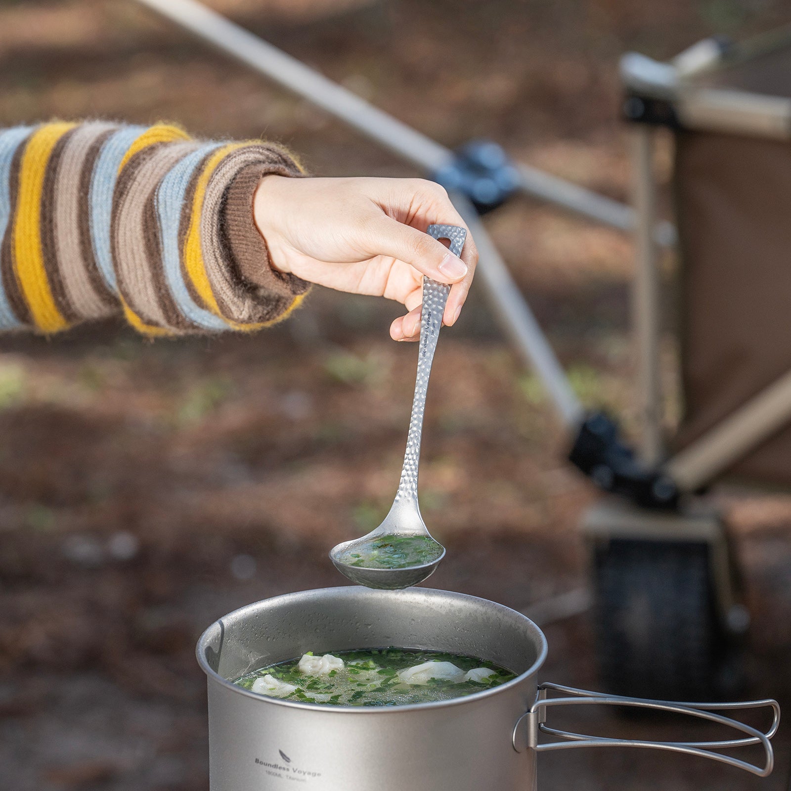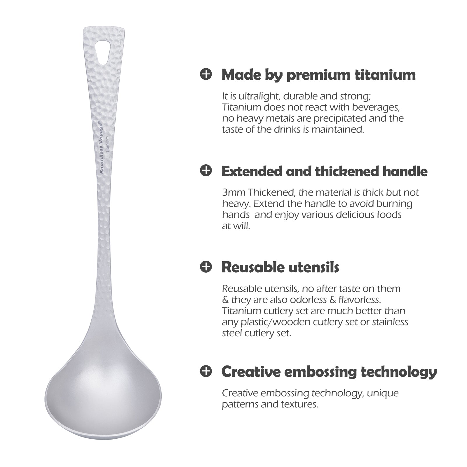 Boundless Voyage Titanium Camping Tableware Resuable Round Soup Spoon for Home Travel Hiking Ti1060T