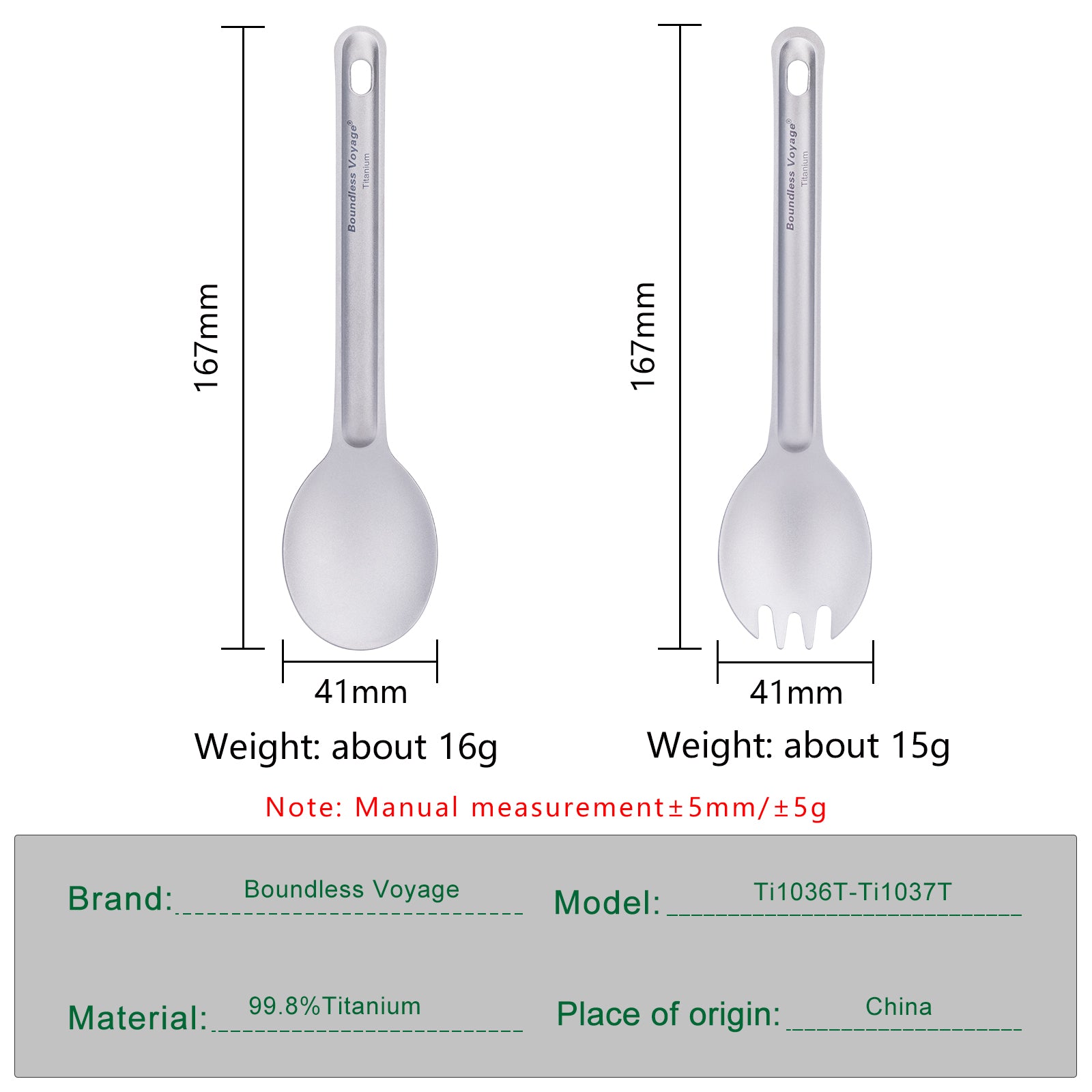 Boundless Voyage Titanium Spoon & Spork Camping Tableware Outdoor Flatware Ti1036T+1037T