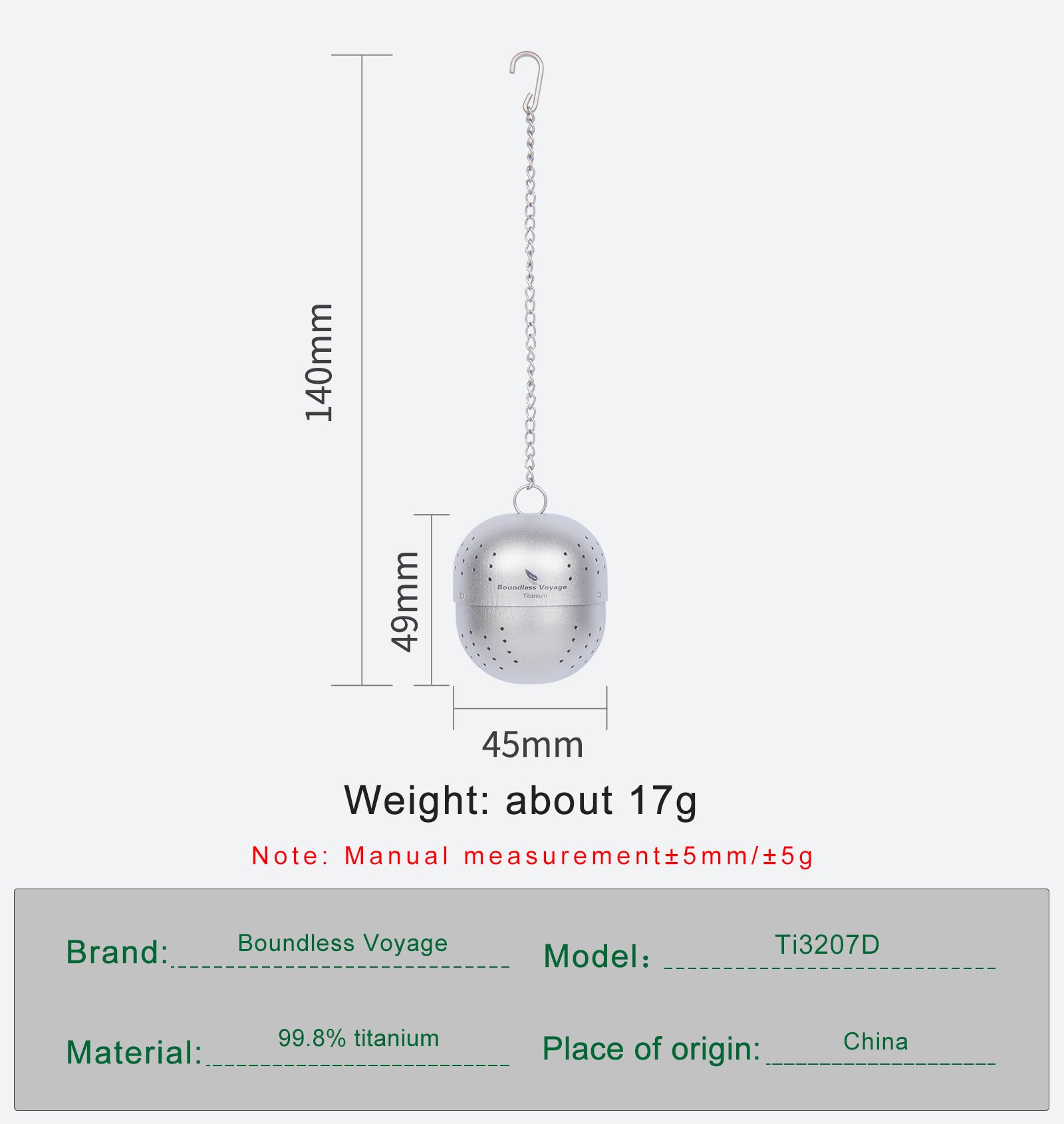 Boundless Voyage Titanium Tea Ball infuser for Loose Tea Spices with Extended Chain Lightweight Tea Bag Filter Mesh Tea Strainer Mug Teapot Home Kitchen Tools Teaware Ti3207D